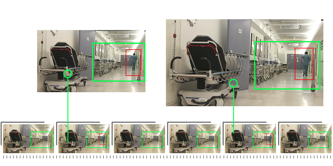 S pametnim iskalnikom lahko narišete okvir, kjer želite preveriti, če je prišlo do gibanja. Snemalnik vam bo nato poiskal vse časovne intervale, kjer se je zgodilo gibanje v tem območju.