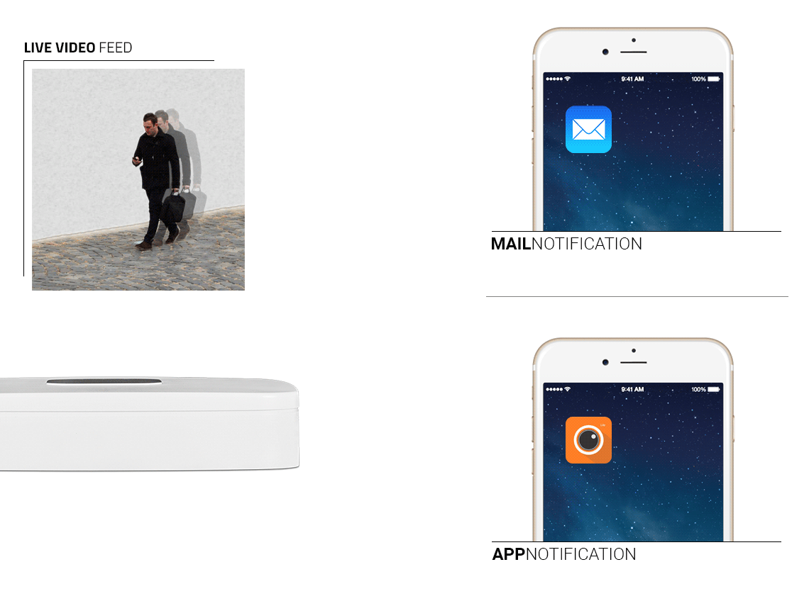 Vsakič, ko kamera zazna gibanje, pošlje opozorilo snemalniku, kateri avtomatsko začne s snemanjem in pošlje sporočilo na email in obvestilo v aplikacijo.