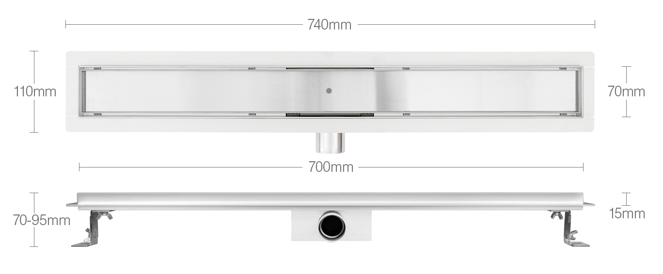 100% INOX ODTOK / VODOODPORNA MEMBRANA / NIZKA MONTAŽA ODTOKA / POKROV INSERT 700mm
