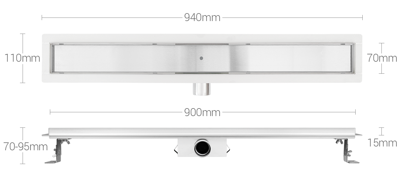 INOX ODTOK / VODOODPORNA MEMBRANA / NIZKA MONTAŽA ODTOKA / POKROV INSERT 900mm