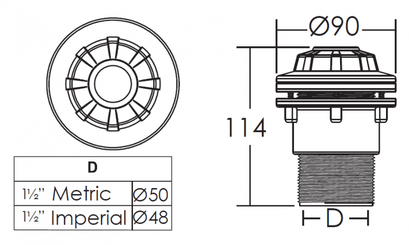 Skoznik EM2828V za vinylne bazene, izdelan iz ABS plastike. Uporablja se za izvedbi povratnih šob.