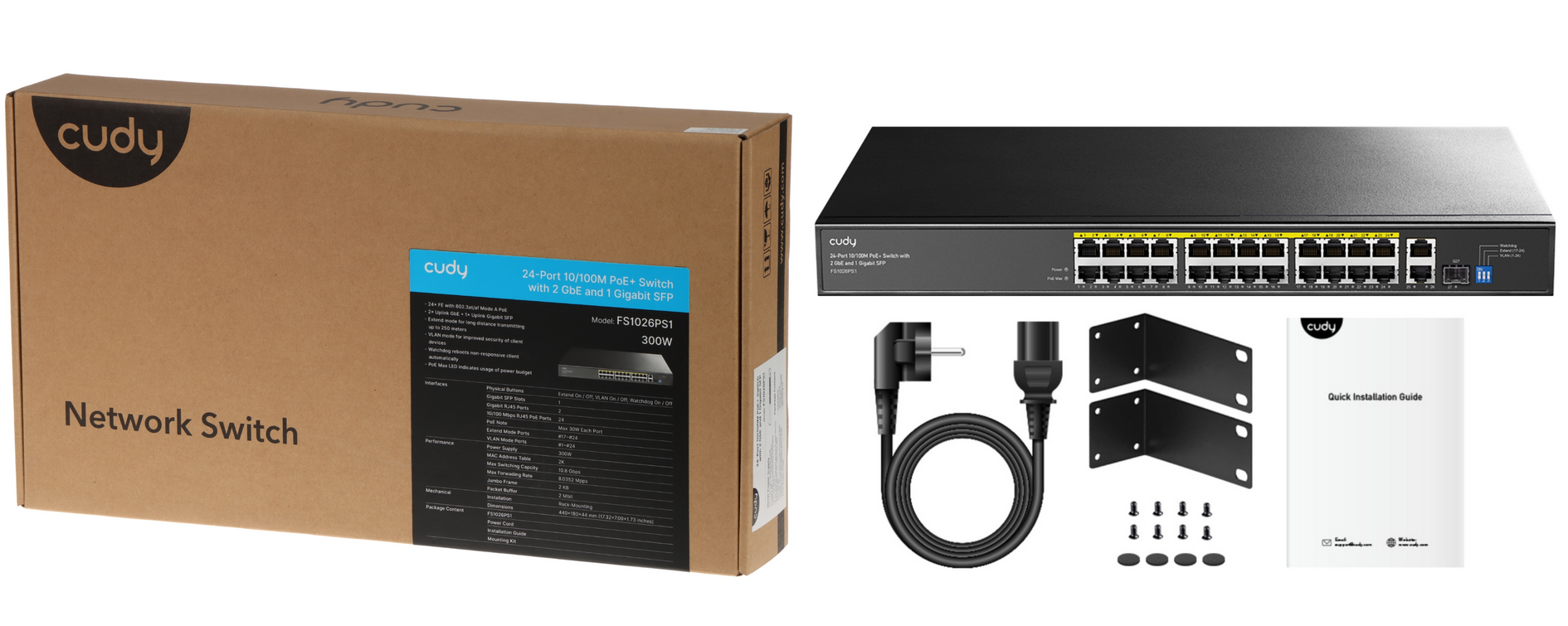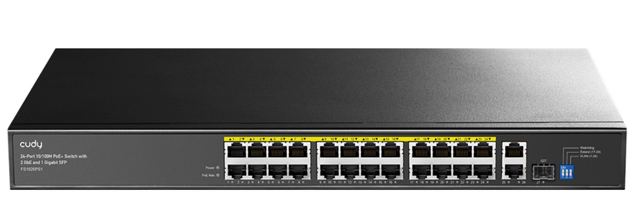 S svojo zanesljivostjo in omogočanjem visoke kakovosti prenosa je 24-portno preklopno stikalo PoE FS1026PS1 idealna rešitev za uporabo v napeljavah CCTV IP. 24 porta podpirata funkcijo Power over Ethernet (PoE).