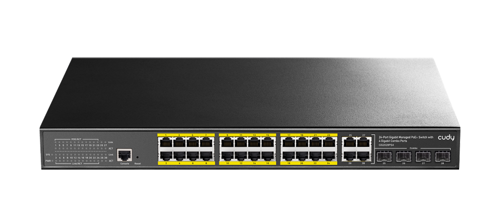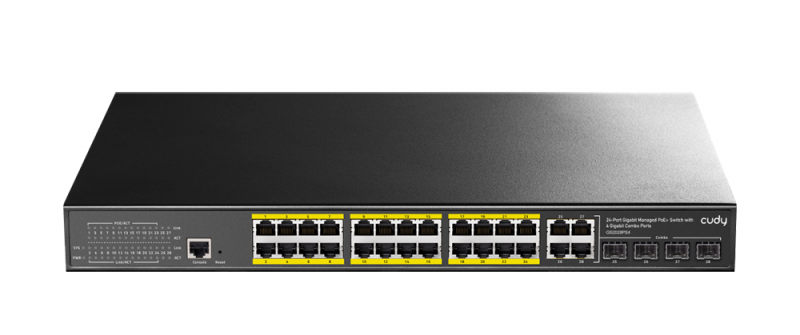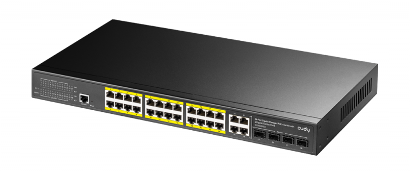 • 24× GbE s PoE (IEEE 802.3af/at)