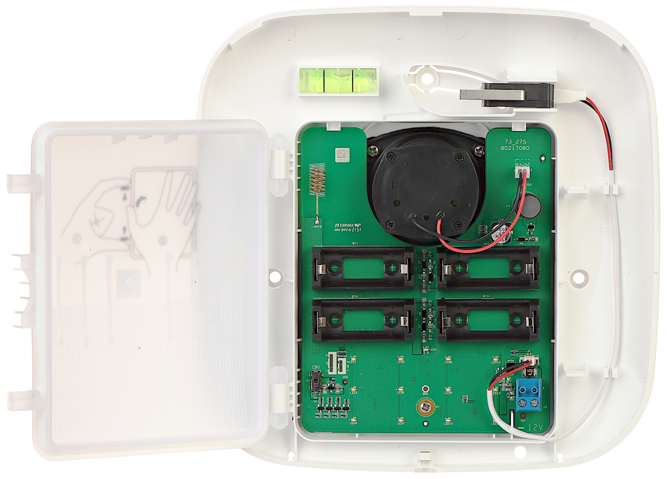 Življenjska doba baterije: 4 baterije CR123A lahko uporabljate 3,4 leta (če se sproži vsakih štirinajst dni in se alarm oglasi 120 s vsakič z izkoristkom baterije 80 %)