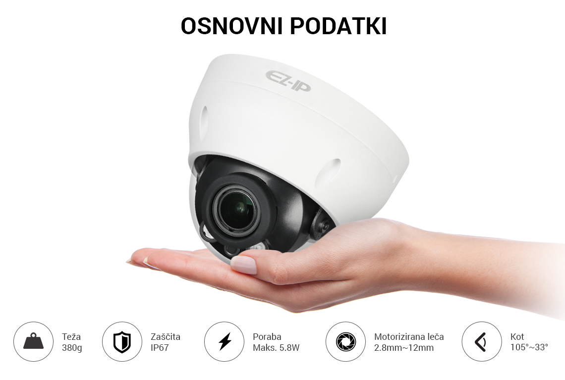 Poraba energije: DC12V: 1.8W, 5.8W(IR On), PoE: 2.2W, 6.8W(IR On)