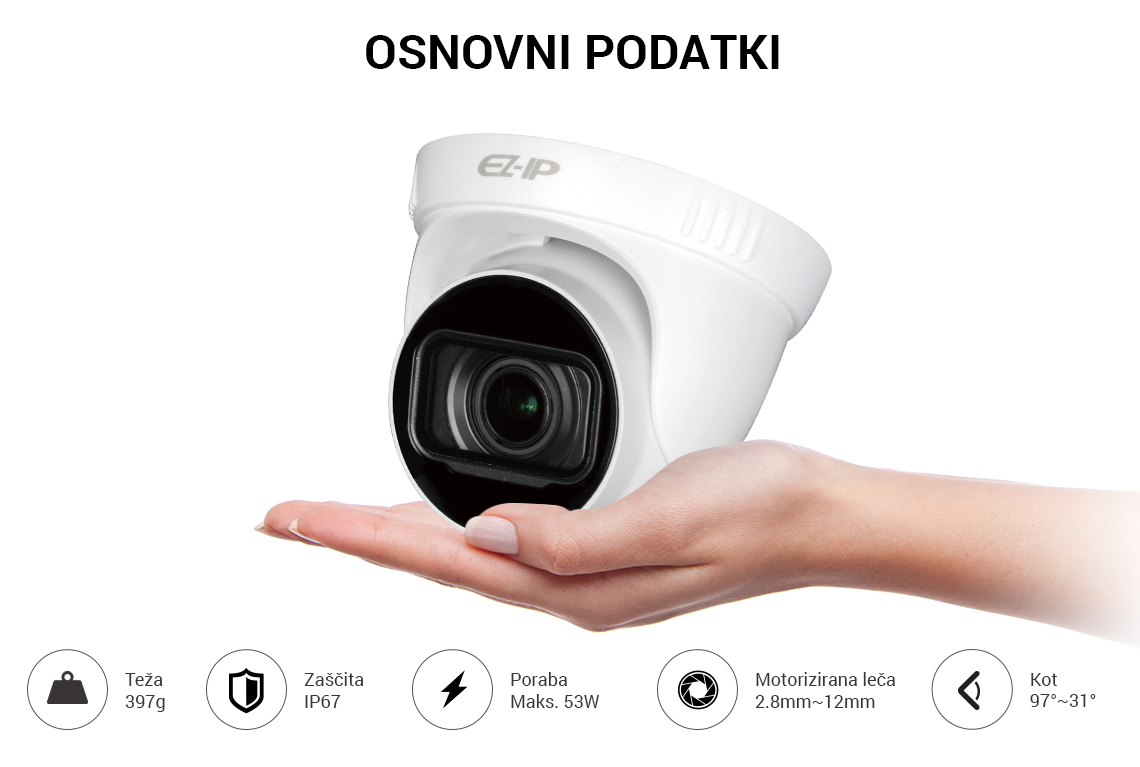 4Mp (2560x1440) - 20fps / Nastavljiva leča 97°-31° / Min. osvetlitev: 0,05 LUX / IR LED domet do 40m / Poraba Max. 5.3W