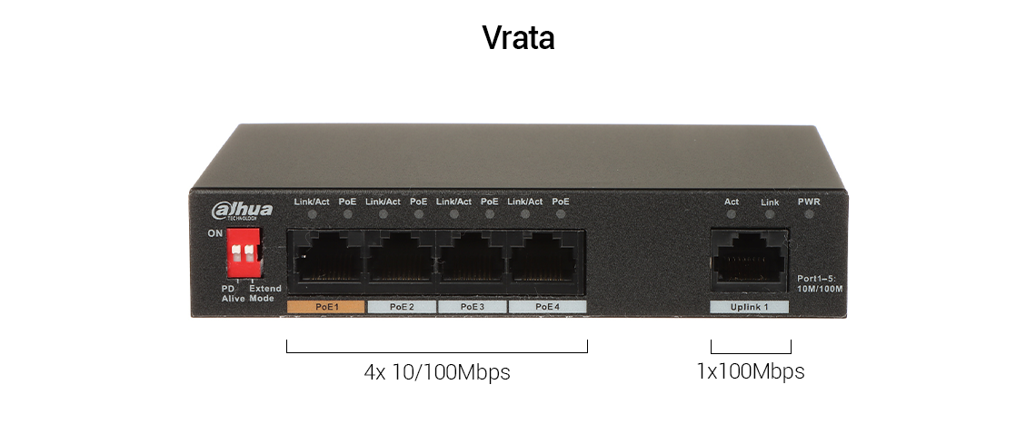 Ethernet port: 1*10/100 Base-T, 4*10/100 Base-T (PoE napajanje)