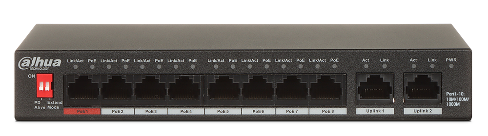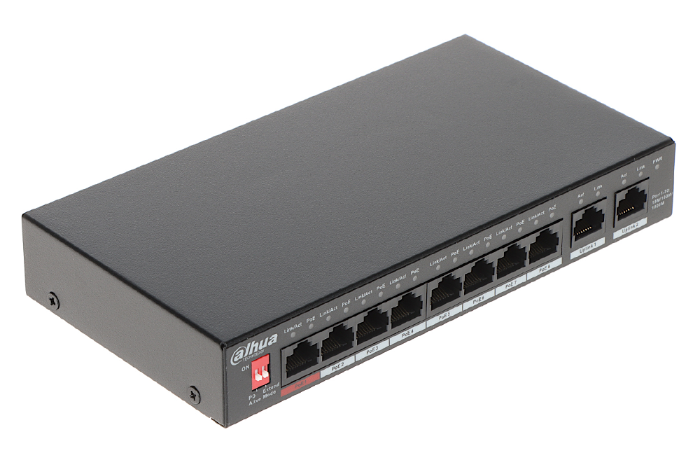Ethernet priključki: 1x RJ45 10/100/1000 Base-TX + Hi-PoE, 7x RJ45 10/100/1000 Base-TX + PoE (802.3af/at), 2x RJ45 10/100/1000 Base-TX - Uplink ports