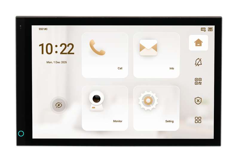10,1" IPS zaslon na dotik 1280 × 800 / Linux OS + IP + Wi-Fi povezava / Dvosmerni zvok / microSD do 512 GB / Alarmni vhodi/izhodi + samodejni vklop ob približanju + senzor svetlobe