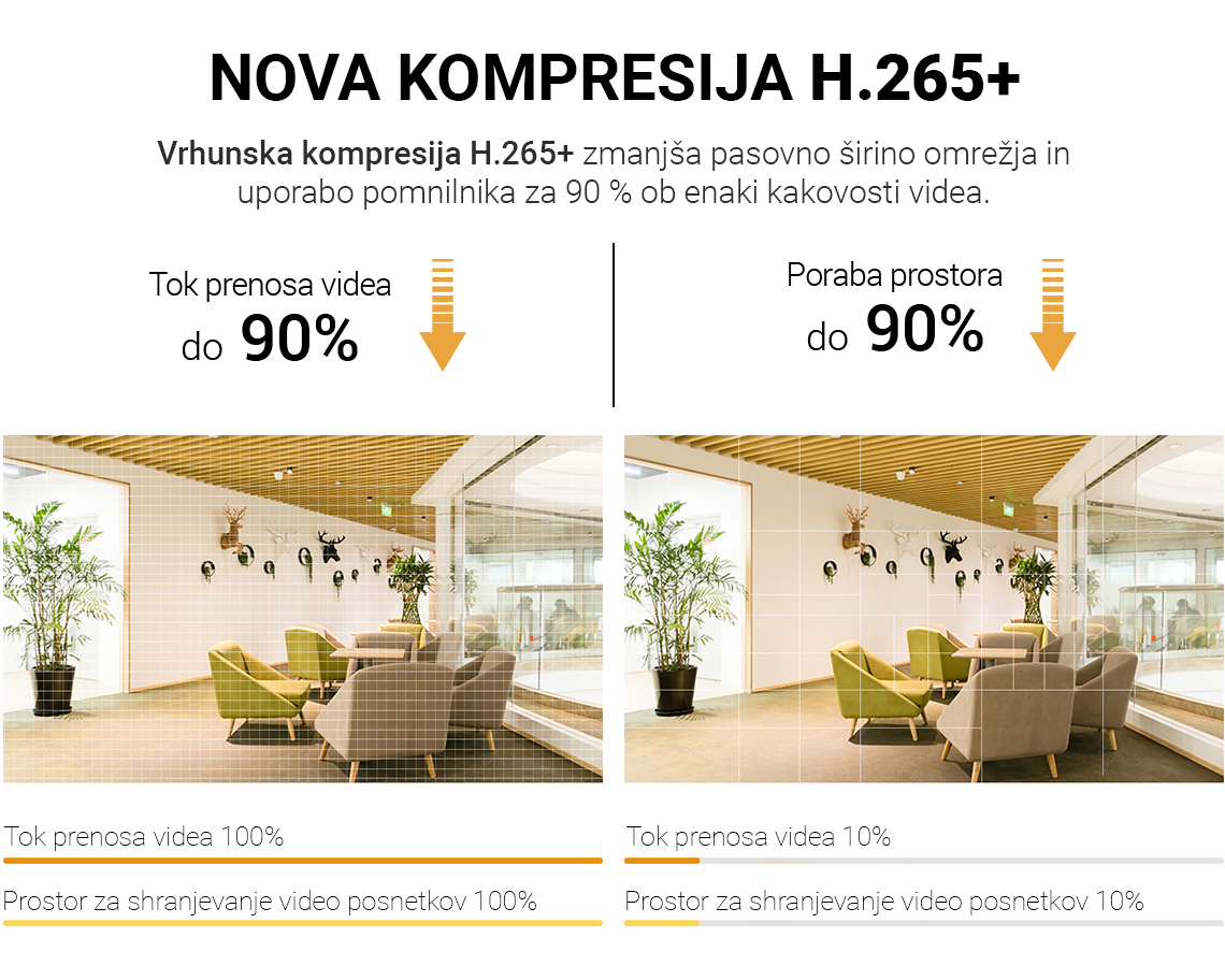 Stiskanje: AI kodiranje / H.265+ /H.265/H.264+ /H.264
