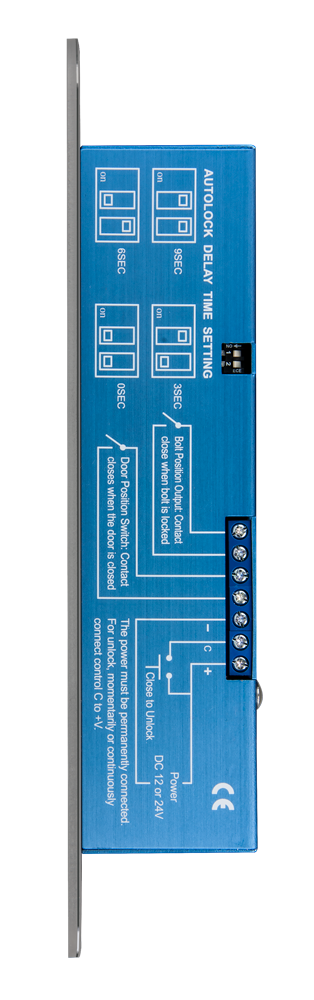 Z dvosmernim DIP stikalom, lahko nastavite zamik časa ključavnice na 1,3,6,9 sekund.