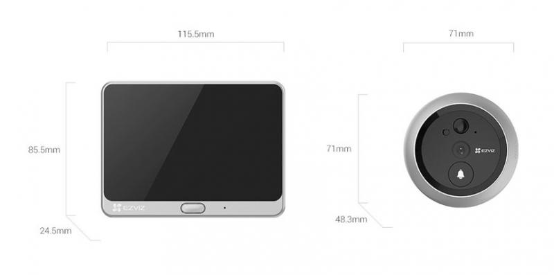 Dimenzija: Zaslon in podstavek: 115,5 x 85,5 x 24,5 mm Kamera: 71 x 71 x 48,3 mm