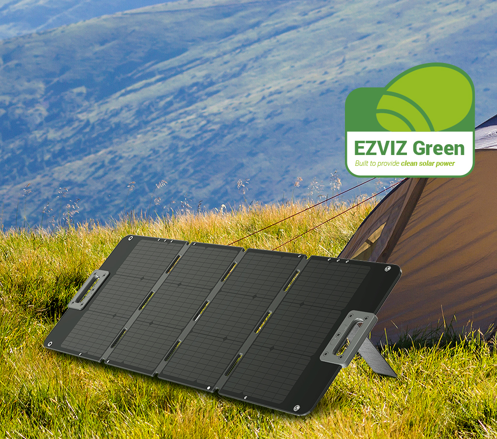 Visoko učinkovit prenosni solarni panel DS-100W podjetja EZVIZ gre z vami na izlete, kampe in vse odročne kraje brez elektrike! Njegova zložljiva zasnova, enostavna za prenašanje, in nastavljivo vgrajeno stojalo pomagata ujeti največjo količino sončne svetlobe. V kombinaciji z EZVIZ prenosno polnilno postajo pridobite čisto in zanesljivo energijo z izkoriščanjem moči sonca.