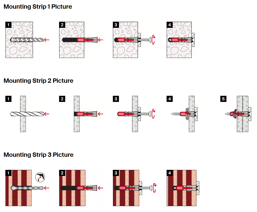 • Zanesljivo delovanje v polnih (raztezanje) ter votlih in ploščastih gradbenih materialih (pregibanje/vozlanje).