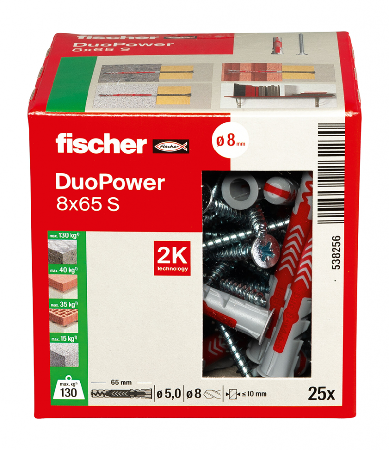 Vsebina: 25 x DuoPower 8 x 65; 25 x Vijak z ugreznjeno glavo 5.0 x 80