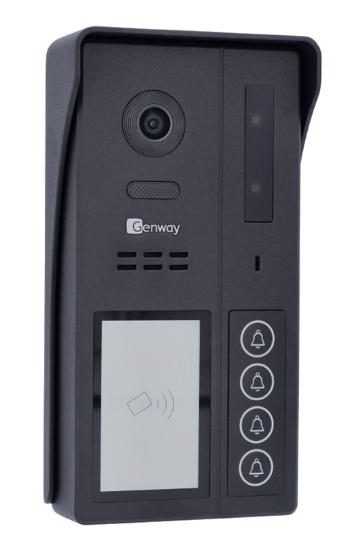 Štiristanovanjska zunanja enota z možnostjo odpiranja s kartico ali aplikacijo. Zunanjo enoto serije F odlikuje enostavna povezava in možnost delovanja