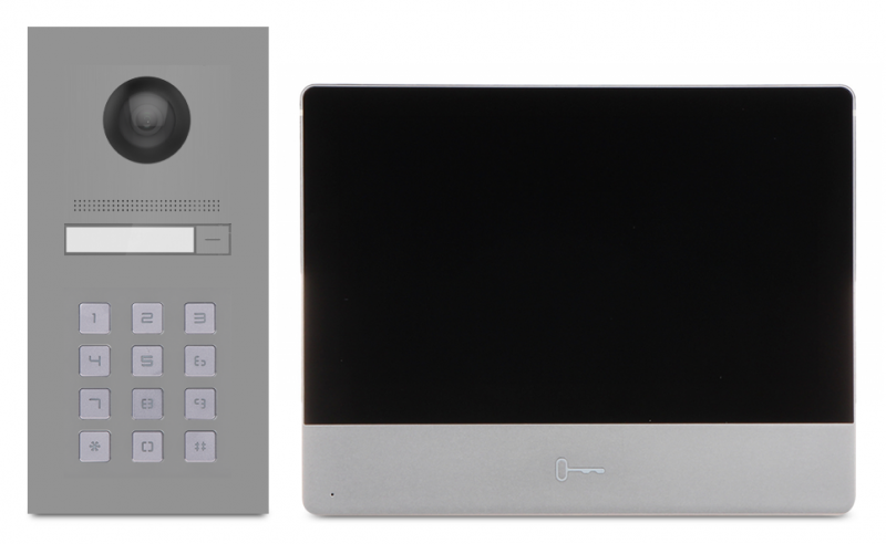 Modul s kamero, zvočnikom ter mikrofonom / modul s tipkovnico / podometno ohišje / 7 palični barvni TFT zaslon na dotik / UTP povezava / interkom funkcija / spomin / možnost alarma / napajalnik