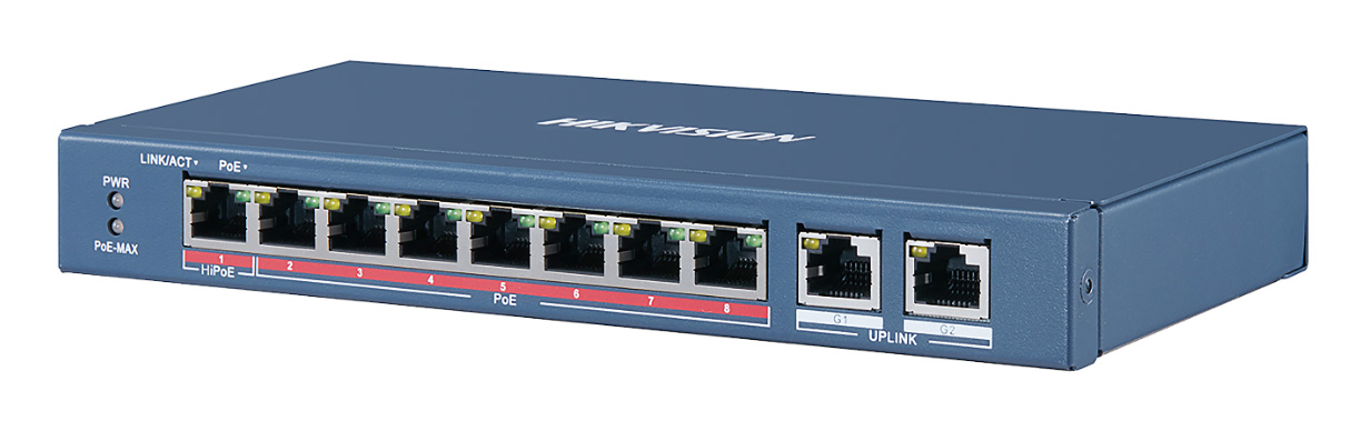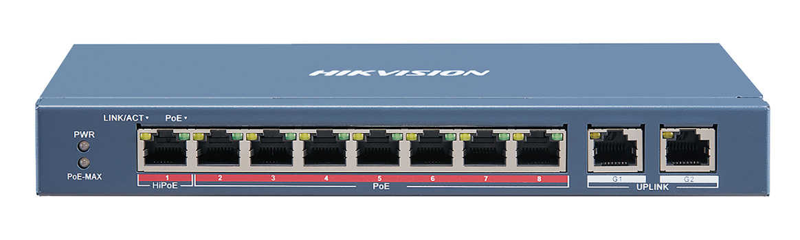 - Število vrat: 1 × 10/100 Mbps Hi-PoE vrata, 7 × 10/100 Mbps PoE vrata in 2 × 10/100/1000 Mbps RJ45 vrata