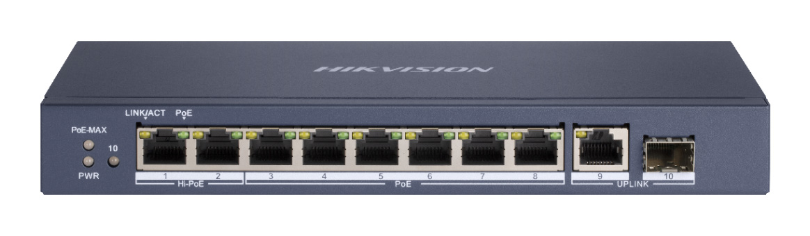 - Število vrat: 6 × gigabit PoE vrata, 2 × gigabit Hi-PoE vrata in 1 × gigabit RJ45 vrata in 1 × gigabitna optična vrata