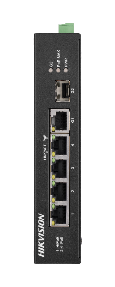 Število vrat: 3 × 10/100 Mbps PoE vrata, 1 × Hi-PoE vrata, 1 × Gigabitna vrata RJ45 in 1 × Gigabitna optična vrata
