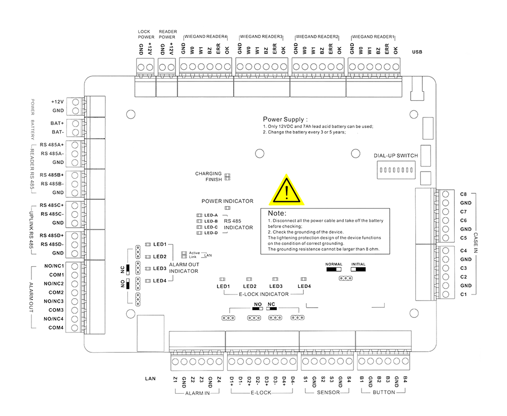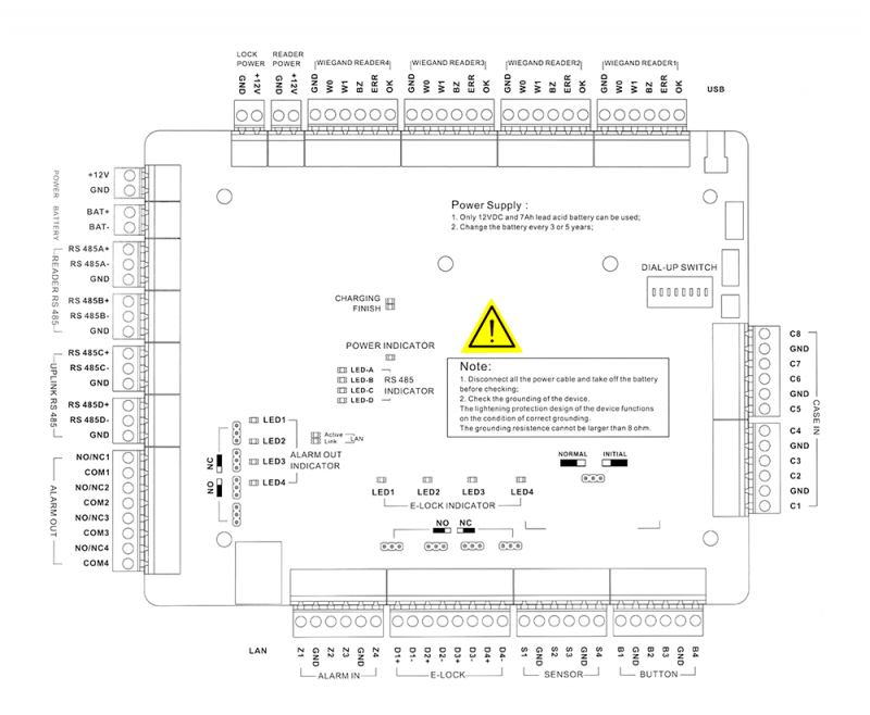 - Število podpiranih čitalnikov: 8 kosov @ RS-485, 4 kosi @ Wiegand