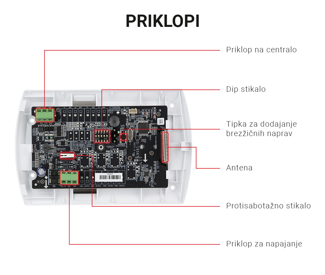 - RF 868 MHz, komunikacijska razdalja 400m na odprtem