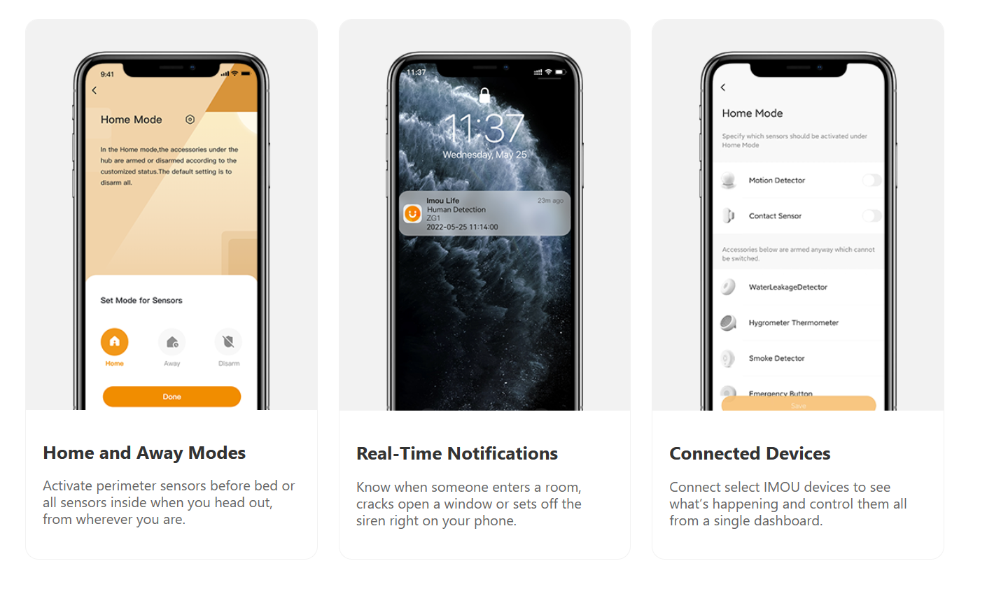 Alarmna centrala IMOU ZigBee 3.0 združuje zaščito celotnega doma z dostopom do 32 enot. Aplikacija Imou Life, ki je enostavna za uporabo, vam omogoča prejemanje obvestil, ko se vaš sistem sproži, aktiviranje in deaktiviranje načinov alarma, spremljanje vseh naprav, tako da boste vedno vedeli, kdaj so v vašem domu zaznane dejavnosti.