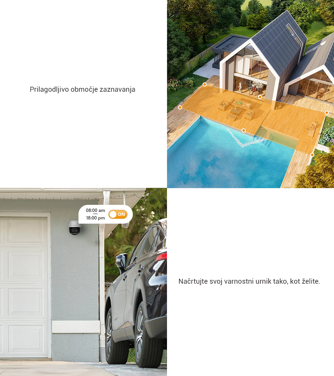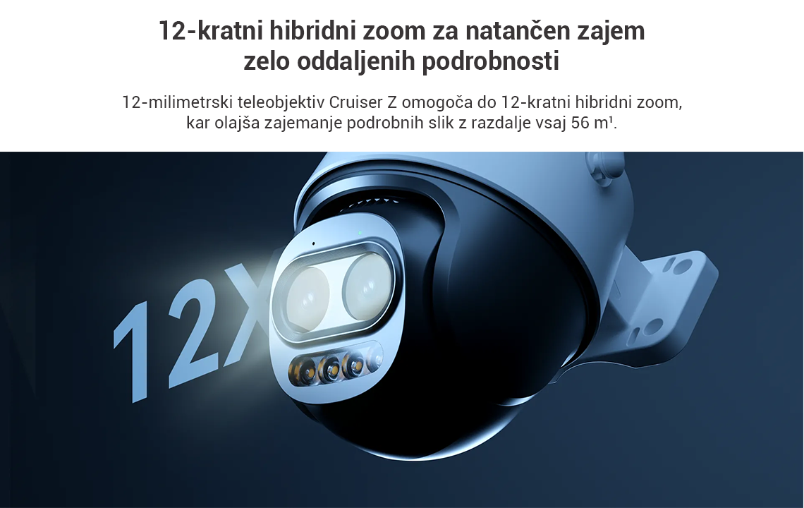 - Vidno polje: 2.8 mm: 95.3°(H), 52.1°(V), 113.7°(D); 12 mm: 24.4°(H), 14°(V), 28.1°(D)