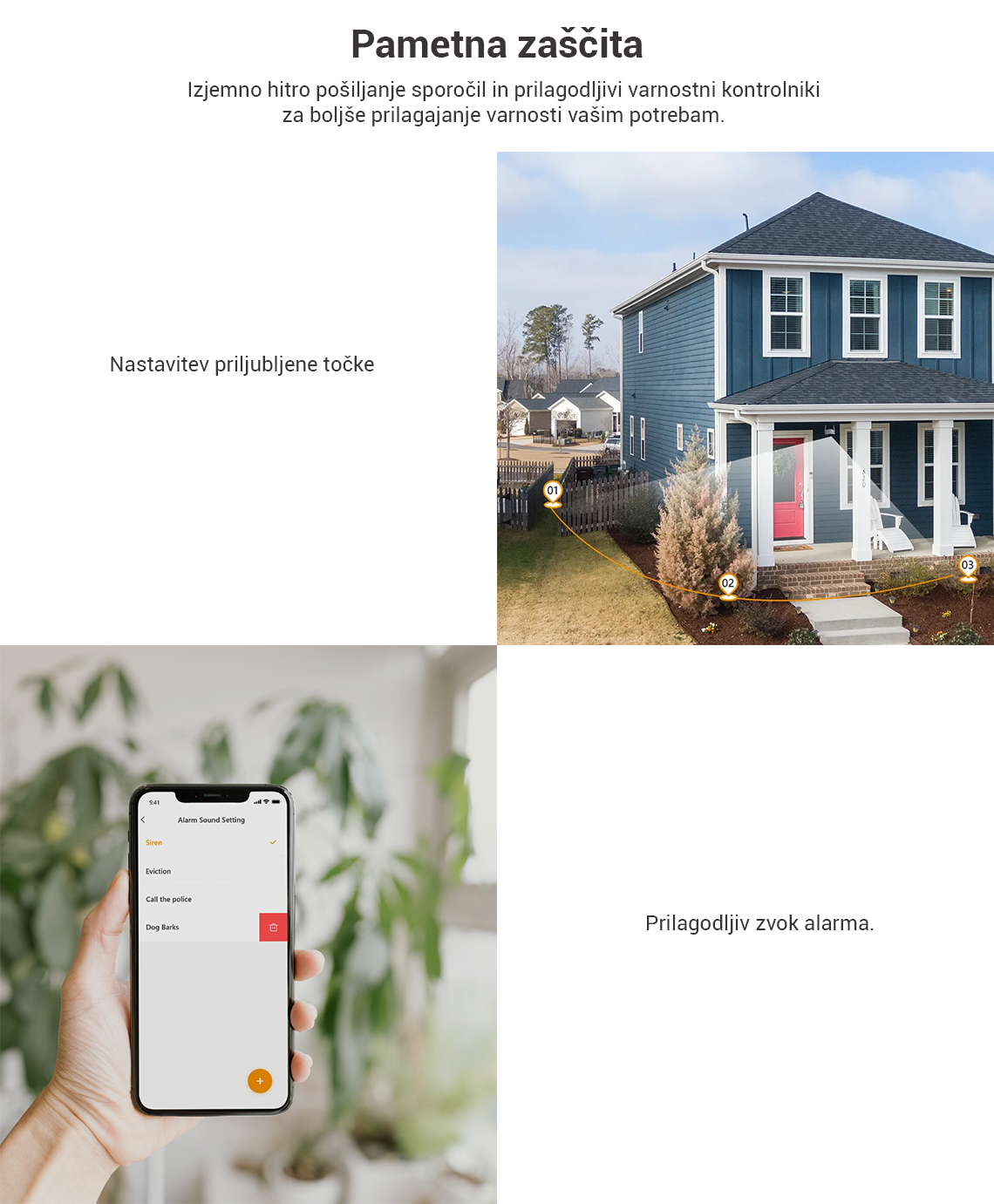 - Vgrajen mikrofon in zvočnik, 110dB sirena