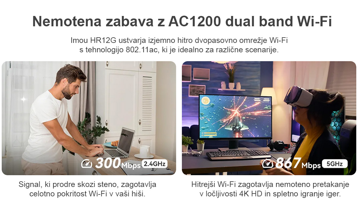 - Dvopasovni Wi-Fi, hitrost do AC1200 (300+867Mbps)