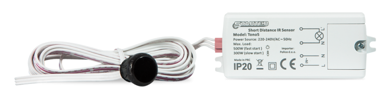 IR SENSOR 90°/zaznavanje 5cm / Rele 500W / IP20