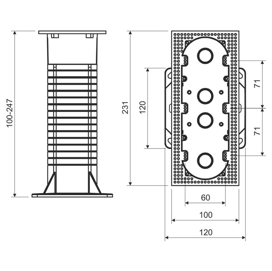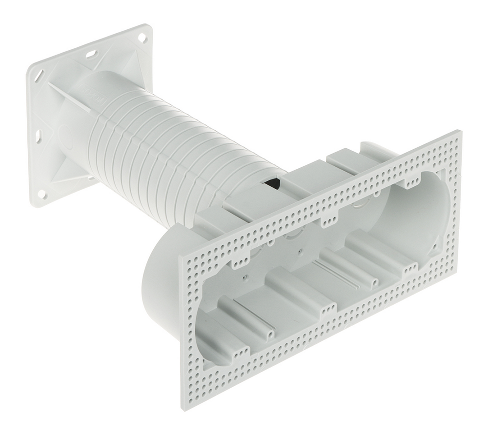 Električna inštalacijska škatla za namestitev naprav na izolirane fasade stavb debeline od 100 do 250 mm. Vzdržljiva konstrukcija. Odprava nastajanja toplotnih mostov.
