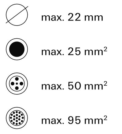 Rezalne klešče za vodnike do 22 mm.