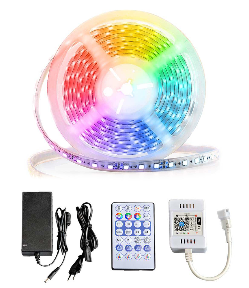 - Paket vključuje 1 napajalnik, 1 Wi-Fi & Bluetooth krmilnik in 1 daljinski upravljalnik (baterija vključena)