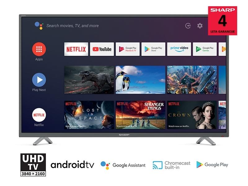 Sharpovi Android televizorji so opremljeni s popolno funkcionalnostjo Android TV, vključno z Googlovim asistentom, glasovnim upravljanjem in številnimi drugimi funkcionalnostmi, upravljali pa boste lahko tudi s pametnim domom. AQUOS Android televizorji prinašajo skoraj neomejeno zabavo ter pametno povezljivost v vsak dom. Seveda so opremljeni z Bluetooth povezavo. Google Chromecast jim omogoča priročno brezžično prenašanje vsebine iz mobilnih naprav, kot so pametni telefoni, tablični ali prenosni računalniki.