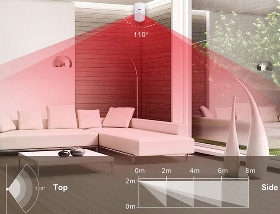 Senzor gibanja skozi lečo zajame infrardečo svetlobo, ki jo oddaja človeško telo, in tako zazna prisotnost telesa. Še vedno lahko igra vlogo tudi v temnih okoliščinah, ima nizko porabo energije, dolg čas pripravljenosti in je enostaven za namestitev. Lahko učinkovito zazna informacije o vdoru.