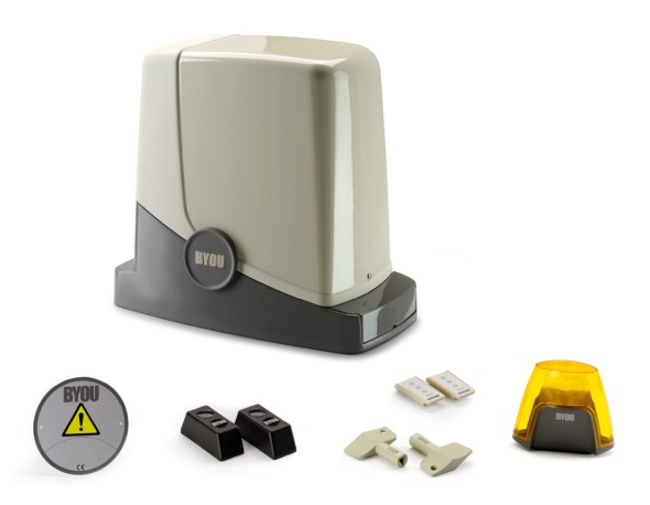 Enofazni elektromehanski opremljen motor do 400 KG z vgrajeno kontrolno enoto + 2x daljinski upravljalnik + bariera + utripajoča luč + opozorilna nalepka