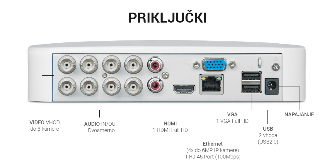 IP kamera: 8 + 4 kanalov, vsak kanal do 6MP
