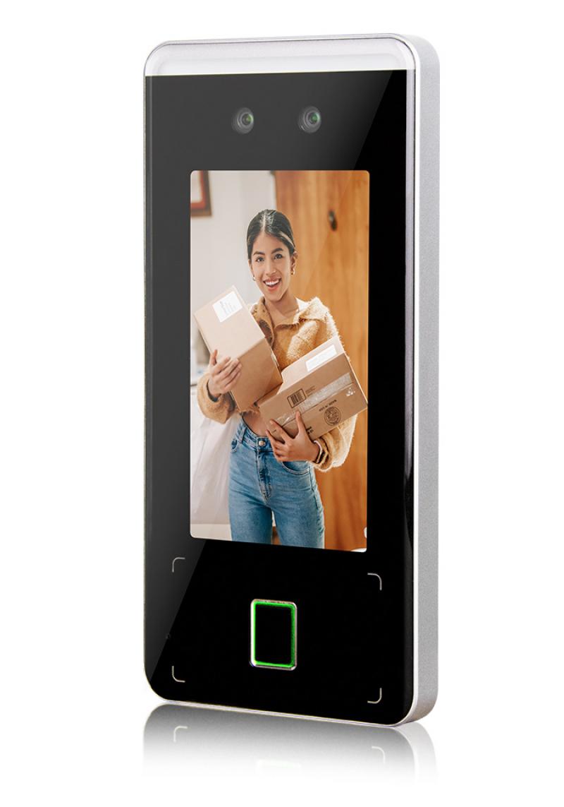 - Terminal za prepoznavanje obrazov, 4.3-palčni LCD zaslon na dotik, širokokotna leča z ločljivostjo 2 milijona slikovnih pik, vgrajen bralni modul Mifare