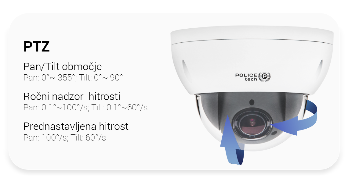 Prednastavljena hitrost: Horizontalno: 100°/s; Vertikalno: 60°/s
