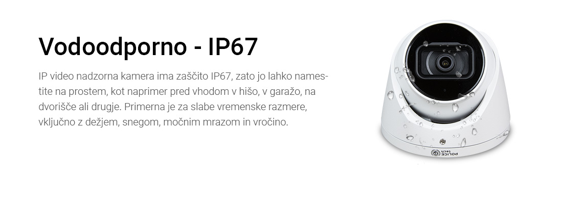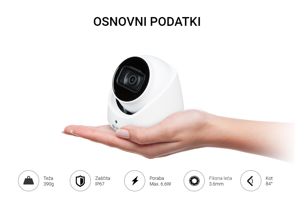 4Mp (2688×1520) - 20fps / Leča 84° / Min. svetloba: 0.008 LUX / IR LED domet do 30m / Poraba max. 6.6W / IVA (Tripwire, vdor)