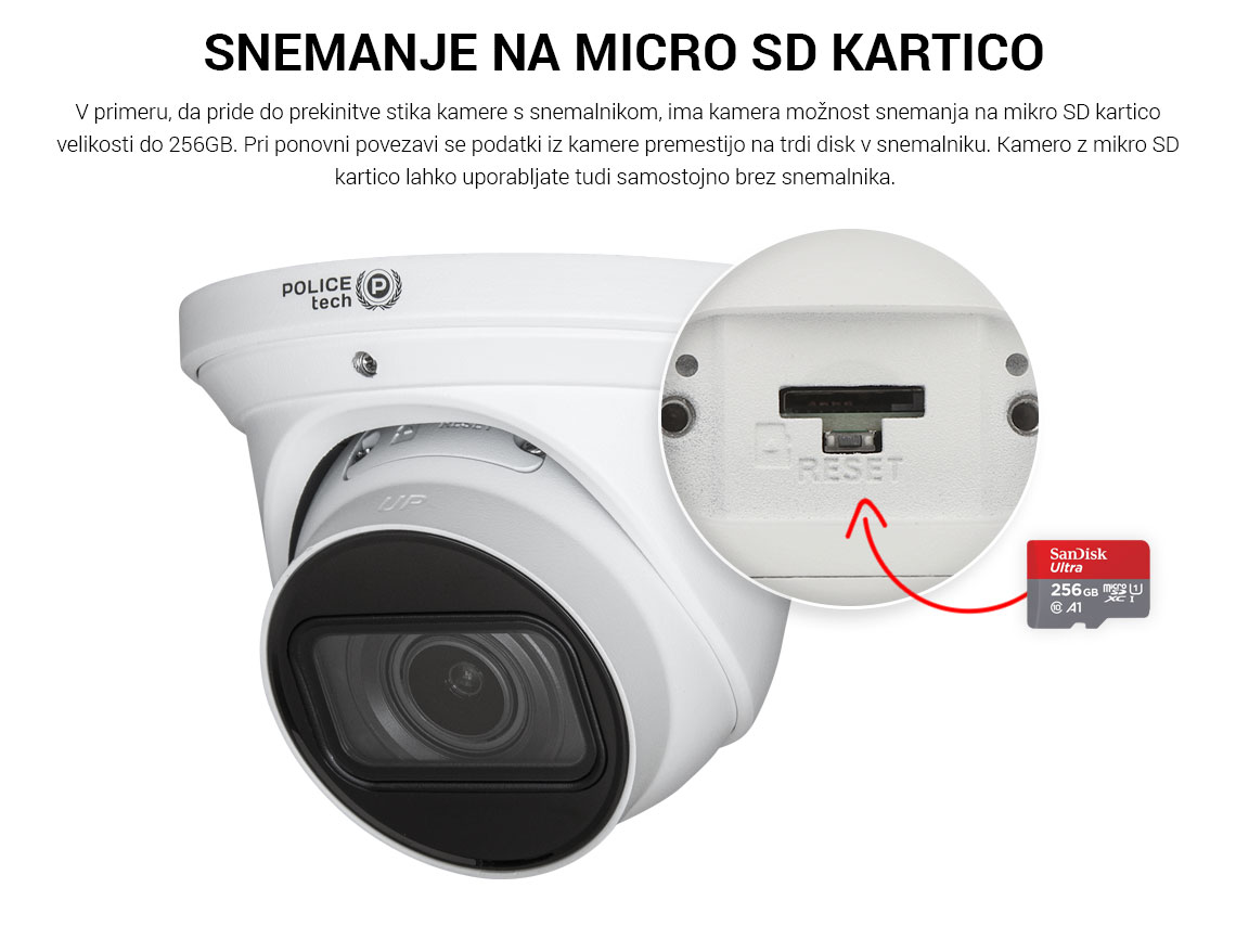 Shranjevanje: Cloud; FTP; SFTP; Mikro SD kartica (max. 256 GB); NAS