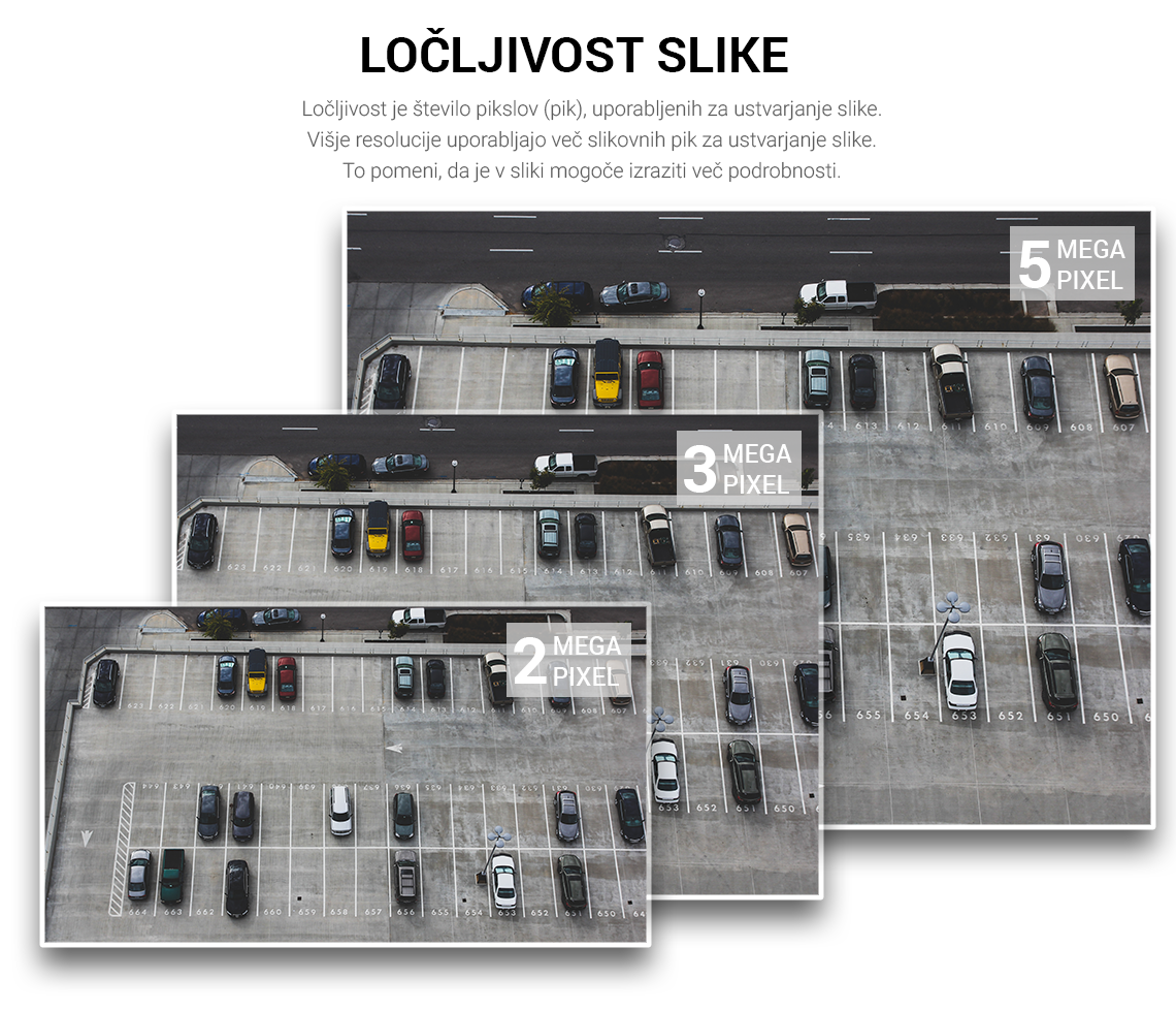 • Kompresija SMART H.265+ je naslednik standarda H.264 in nudi dva krat večjo kompresijo podatkov pri enaki kakovsoti ali bistveno boljšo kakovost pri enaki vrednosti