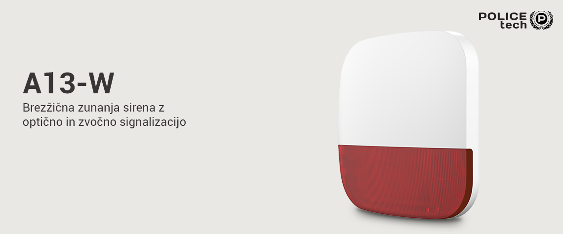 1 x POLICEtech A13-W2 ZUNANJA SIRENA Z OPTIČNO IN ZVOČNO SIGNALIZACIJO