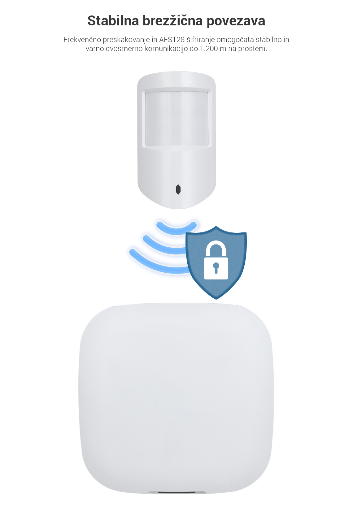 > Funkcija frekvenčno preskakovanje in dvosmerna komunikacijska tehnologija zagotavljata stabilnost komunikacije.