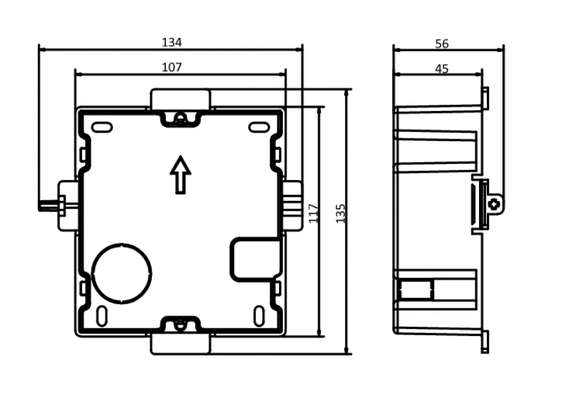 Pokrov: 134 x 124 × 4 mm; Gang Box: 134 x 135 × 56 mm