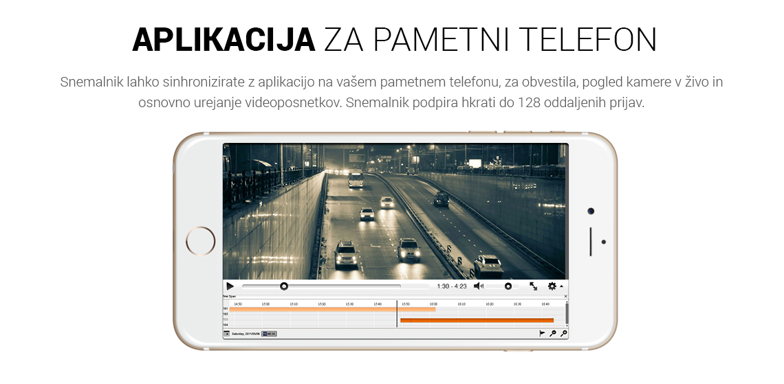 Način snemanja: Ročno, urnik (redno, ponavljajoče), zaznavanje gibanja (zaznavanje videa, tampering, izguba videa), stop