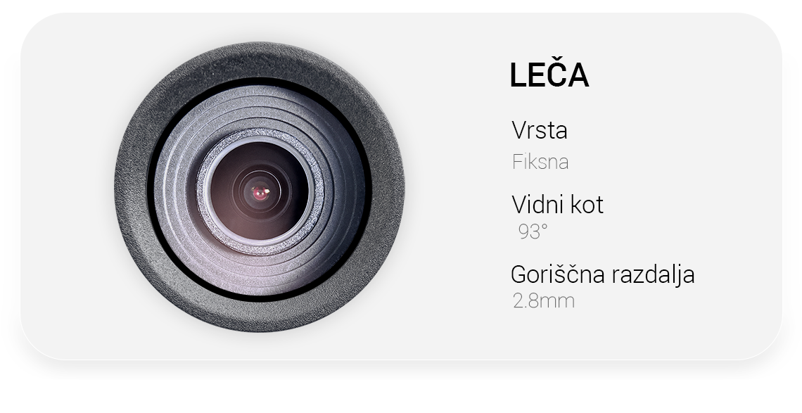 Goriščna razdalja: 2.8mm: 116°×93°×68° (diagonala×horizontala×vertikala)