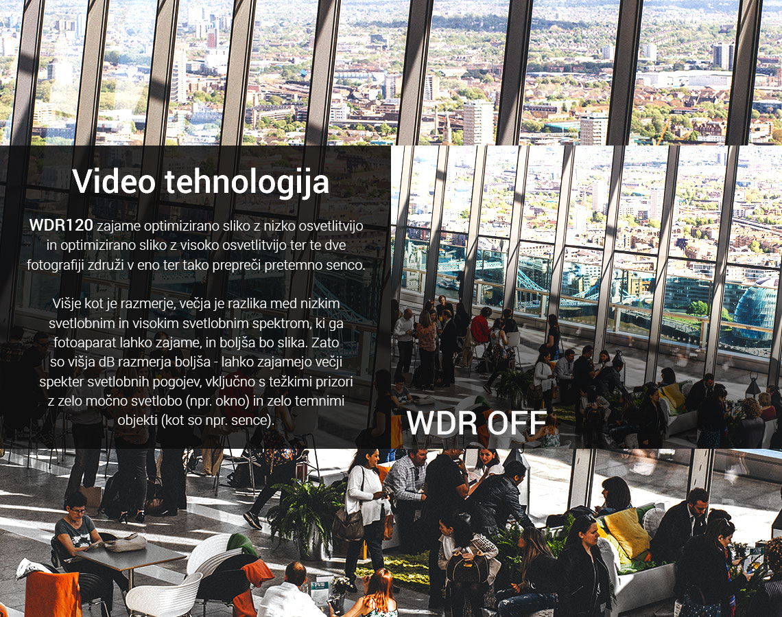 Izravnava osvetlitve iz ozadja: BLC / HLC / WDR 120dB