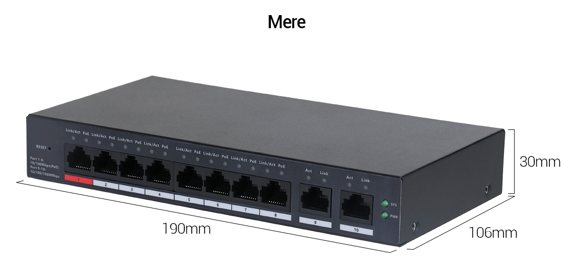 • Upravlja porabo energije PoE in vklop/izklop napajanja PoE. Podpira Inteligentni PoE.